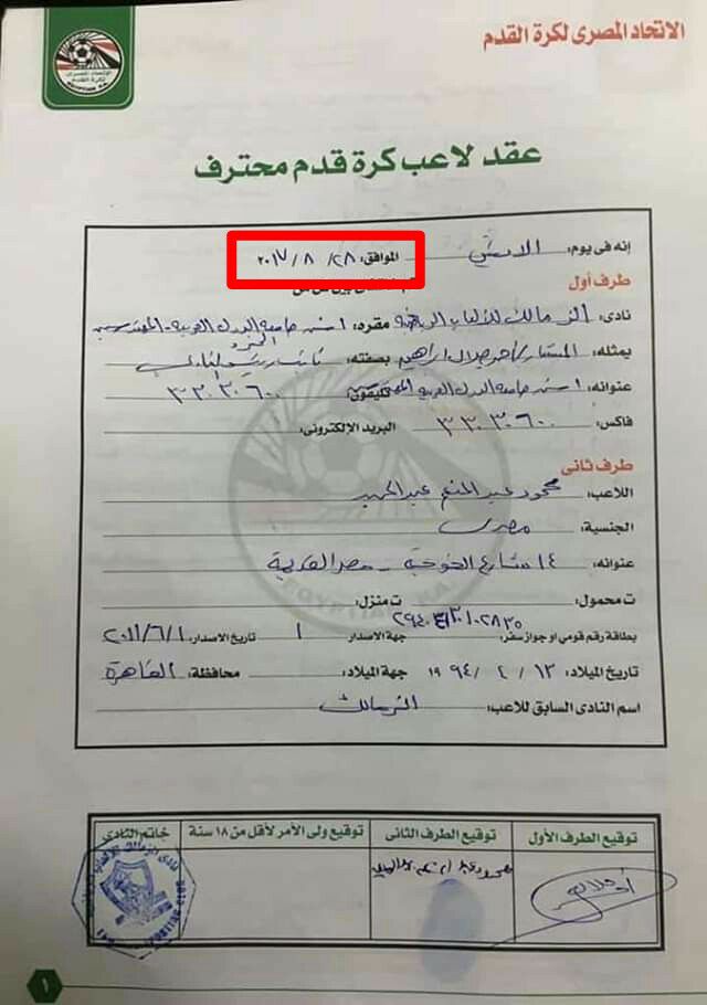 المشكلة كلها في ان اتحاد الكورة سجل للزمالك عقد بعد مرور المدة القانونية للتسجيل بحيث اصبح القعد ملغي